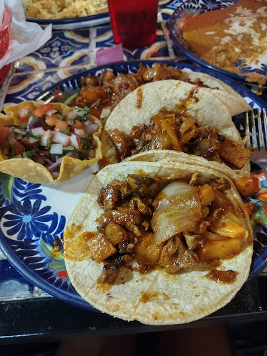 The food came quickly and everyone was happy with their meals. At Los Panchos, you get A LOT for your money. The side dishes alone, splayed with gooey refried beans, rice and various accoutrements, were in fact, big as your head. A dish of Fajitas for 2 was obviously mislabeled because it will surely feed 5. I ordered Tacos Al Pastor. This dish neither looked nor tasted anything like the traditional version, but it was delicious. The only thing that tasted Pastor-like was the pineapple chunks. I swear, the sauce had an Asian twist to it....I love Asian food, even in a Mexican restaurant.