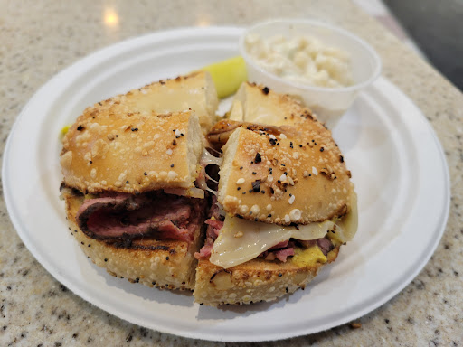Read moreI found this place by accident and was glad I went. I had an Everything bagel, sliced and toasted with cream cheese, and I also got the Ellis Island Pastrami sandwich on an Everytjing bagel (it comes with a rye bagel, normally). Both were excellent. The bagels have a slight crisp on the outside, and the inside is appropriately chewy. I really liked that the Everything seasoning was on both the top and bottom halves of the bagel. Usually, most places only season the top, for some inexplicable reason. The Ellis Island pastrami sandwich had very good, lean pastrami, spicy mustard Swiss, and optional onion (which I got). It was delicious and I would've preferred some extra pastrami because it was so good. It was served with a side of macaroni salad and a pickle.