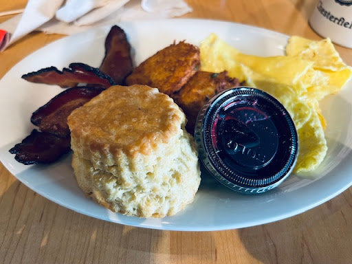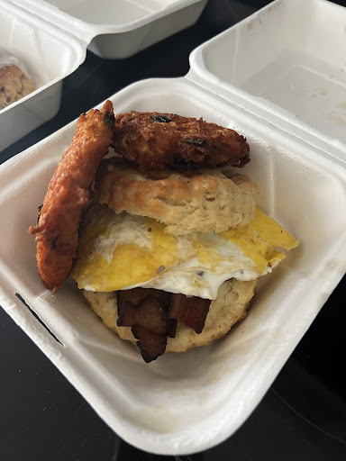 Read moreYikes! What a train wreck. Placed my order through the Maple Street app. Ordered a bacon and egg biscuit, side of smashbrowns and an iced cinnamon biscuit. Wait time would be 21 minutes, pickup time of 10:31. Small group of people waiting when I arrived at 10:25, a little early for my order. 10:31 came and went, after seeing a few other waiting patrons ask where their order was, I figured I'd be next to ask. While still waiting, I saw two other orders go out incorrect and the customers have to repeat their beverage order and wait for them to be made, one offered to forgo the beverage to not have to wait longer, but was told to just wait another moment. 10:36 my order was finally ready, not the worst wait time, but 30 minutes from the time of placing to pickup is getting there. I always check my orders and glad I did, no side of smashbrowns! When I told an employee, there was little communication and just a grabbing of my bag to verify and telling another employee to drop 2 smashbrowns. Let's wait some more I guess. Another wrong order or two later, at 10:45 I finally got my smashbrowns with my now 9 minutes colder other items. It wasn't really busy in there but it was apparent there was not great communication between the staff and who was supposed to prioritize what jobs. Food was okay. Biscuit was kind of dry even though they placed my fresh smashbrowns directly on top of the biscuit so it could soak up all the grease. The smashbrowns are just jewish latkes, what a mediocre blast into my past. The cinnamon biscuit was downing in a pool of icing, which did slightly help the dry cinnamon flavored biscuit.