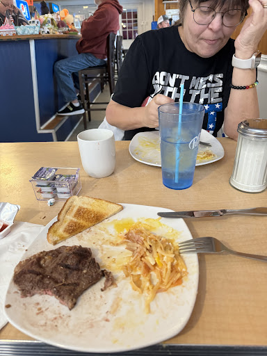 All I can figure is the people that work there gave the 5 star reviews. This was one of the worst experiences I have ever had. After waiting 10 minutes to have someone ask what we wanted to drink we thought we should just leave.. always listen to your inner voice..so we finally ordered nothing special just something easy off the menu. Waited another 35 minutes 2 guys who came in 15 minutes behind us were waited on quickly and had their meal brought out while we were still waiting for our meal( and I’ll add they ordered specific items cooked specifically) so paid for our tea and left. Maybe you have to be a regular or maybe you have to be 85 to be served faster not sure but what I do know for sure is I would not recommend this diner to anyone. And the tea I did have tasted funny so I probably missed a good case of indigestion or diarrhea...