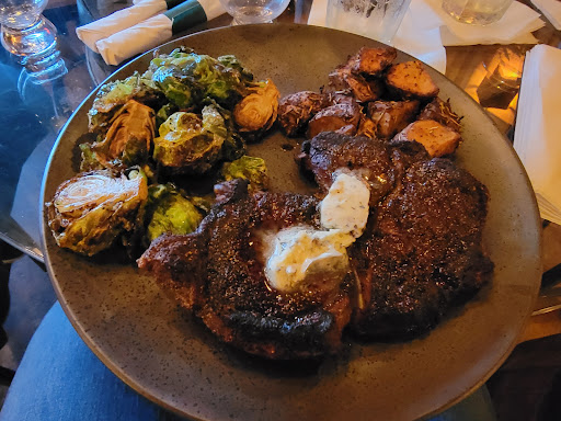 I ordered the Prime Rib. The waiter told me they didn't have it and suggested the Rib-eye. I ordered the Rib-eye "Medium" (pink middle) and proceeded to sample the Blanton Bourbon. Being that I was visiting with my son, I didn't worry about the time. But... at least thirty minutes later, I have no steak (any food). My son indicated the cooks (which are visible from the floor behind a window) were NOT preparing any food on the grill during our talk. Wasting still more time, I guess they had to either go to the store to get the meat or butcher the cow out back... not sure which. The steak finally comes to the table (much, much later) black as coal. I am not sure what it was before being overcooked (but now, it's well-done shoe leather about half inch thick). It was terrible.