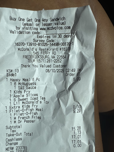 Read moreI am so upset writing this I can barely speak. I’ve had 3 orders from door dash from this McDonald’s. First one they forgot my sandwich all together but since kids got their meals I just sucked it up. Last time they forgot both my kids drinks so I figured whatever I’ll just give them milk. Today I got some of the worst news of my life. I decided to order food since I literally could not fathom making food today. Kids were hungry we waited. Ordered DoorDash. Finally came and they forgot not 1 but 2 kids meals entirely. Even has on the outside receipt where it says kids meals. I thought it was suspect there was only one bag for 2 kids meal boxes, 2 large meals and drinks. Come on guys! Every single time I’ve ordered from you, I’ve literally been ripped off. Maybe it’s a scheme at this particular McDonald’s? Whatwver you do, unless you are physically at this McDonald’s and can check the bag do not get ripped off and...