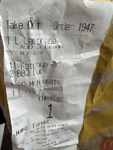Read moreNever again. The list of things you can touch with your bare hands working the drive thru is the cup and the bag⌠please do not ask me whatâs my order was and then put your BARE HANDS into my bag of food and proceed to dig around to make sure itâs the correct bag. Also, why is there a sweet and sour sauce container that someone touched with their bare hands sitting on top of my fries that I had planned to eat instead of anywhere else in the bag that isnât touching my food? Had to ask for a new burger because after she dug around in the bag she hands it to us and the burger on top isnât wrapped, it was just sitting there all open on top of the wrapper. I get that itâs FAST food but there are proper food handling laws for a reason. Pandemic or not, Omicron or not⌠if I came to your house when youâre about to eat, asked for $14.09 and then stuck my bare hands in your food before you ate, you wouldnât eat it, right? Or seek me out to keep giving me money for food you watched me touch? All I can see is those long fingernails on bare hands reaching into my food. Itâs rare I eat fast food, thanks for helping curb those temptations when I come to town. (The photo was after we removed the unwrapped burger) Edit: After seeing many other bad reviews for this location, it makes sense why no one offered me a receipt.. Hard to give the corporate office a definitive time or order number if you keep my receipt. This isnât your first rodeo, is it? :)) So McDonaldâs will be raising menu prices by 6% next year to keep doing a subpar job at serving subpar food. That logic is...