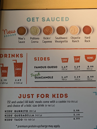 And really Moe's quality in general has really gone downhill. The meat quality is barely one notch above Taco Bell. The steak is super gristly, the chicken rubbery and the taco meat tastes like its been sitting on a crockpot, for a week, its like catfood+taco seasoning. The cheese is also really low grade and the new salsas are much lower quality.