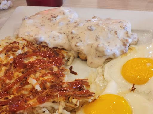 Ā Ā Ā Read moreFrom the moment my dad and I walked in, it was off. The woman up front had to yell back at our server multiple times to come grab us and he didnāt seem happy to be there at all. When I was concerned about pricing he didnāt have an answer for me. A server is supposed to help you get the best deal and tell you the easiest way to order things. He gave me an outrageous price for the French toast I wanted so I just said nevermind and got something else. I got the cinnaswirl pancakes a side of hash browns and a side of 1 egg scrambled with cheese. Dad got bacon and eggs. My eggs were super overcooked, brown (almost burned) in some places and the cheese was like hard from it. They looked gross and they were gross. The hashbrowns were literally half uncooked and half burnt. I wish I had taken a picture because it was THAT bad. Literally black and white. I tasted a bite and they were also cold. My dad didnāt even touch his. The pancakes tasted alright only bc of the icing and bc I was starving but were way to big (doesnāt mention anything about them being big, I thought they would be regular size) and stuck together. On top of all that, everything was extremely over priced and we paid $43 for one of the worst breakfasts weāve ever had. That part kind of pissed me off. I have no clue how this place has 4.5 stars bc that is 100% a lie. Completely misleading. And this is coming from someone who has never actually decided to go leave a review on somewhere. It was that bad that I had to jump on here. Would have been better off going to IHOP 10 minutes down the road...