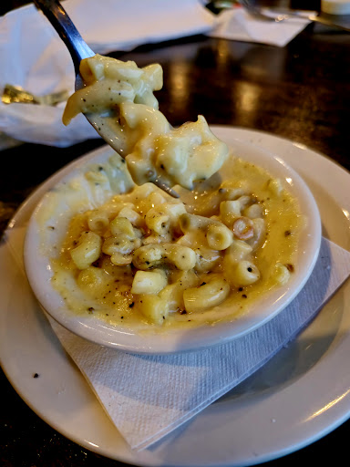 As it turns out the beer cheese for their pretzel app and the gravy for the bangers and mash are store bought. We ended up getting the cheese sticks (pictured: also store bought) and sent them back (no cheese inside) for onion rings (made in house). The onion rings were rubbery, bland, and covered in cornmeal. Next, was the salad. Low quality romain and store bought croutons made this disappointing. I didn't ask but the caesar dressing may have been store bought as well. The bangers and mash are also pictured. (Gravy on the side) The mash was definitely made in house but lacked seasoning and refinement that should come with being in business for 54 years.