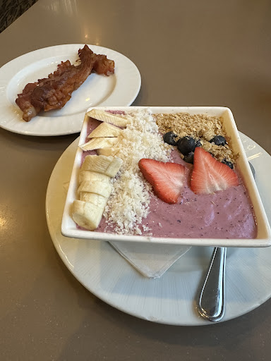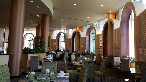 Food is marginal at best. Staying at the hotel, this is the only restaurant option. Three days of meals has given a pretty clear picture of 2 dining choices, that are the same menus. Spinach omelet was made with soggy frozen spinach. The breakfast buffet ($14) had powdered scrambled eggs. Strawberry shortcake made with frozen strawberries and cut up squares of Sara Lee pound cake. The rueben was soggy. Hamburgers are safe. Coffee is bitter, the espresso machine "broke 3 weeks ago." The wait staff gives you the feeling you are an imposition. So disappointing...