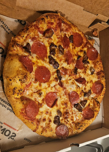 Order #5: The sausage and pepperoni pizza. Not a big enough problem for me to call but consistent quality issues is enough for me to finally write a review. Two full slices with no sausage? And this is the order I received after speaking with the Sr Manager about a problems from my last order. He gave me a credit because of my previous issues, but is the pizza prepared well for a customer with recent quality and delivery issues?