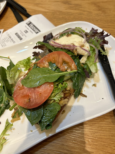 Read moreWe have always loved Panera ever since we moved near one. Now with 2 boys we bring everyone to Panera every chance we get. This Sterling location is one of the not so good ones. I don't feel the warmth here other than from there adorable fireplace out front. Which a shame that they have a great atmosphere but horrible food. I notice the manager in the kitchen every time I visit and the food always seems less generous. I have been ordering the caprese sandwiches lately with extra mix greens and no aioli nor green goddess sauce bc I like to control my calories. Well I received both sauces and also a very poor portioned sandwich. There should have been atleast 3 slices of mozzarella as the sandwich is portioned into 3 sections.... I only received one slice of mozzarella!??? How is this possible ?!!!!!? And there were absolutely no "extra" toppings. There were actually barely anything in my sandwich. It was mostly bread - which is amazing French bread - to be honest - especially toasted- but is that all I get with a mere few slices tomatoes and slap of cheese a several leaves spinach ? When I confronted the manager who made my sandwich, he looked confused. No apologies nothing, just "what do you want me to do just add a piece of cheese on that portion and reheat it ? I said he also forgotten to hold the sauces ... manager replies with : " ... I think it's ok there was not a lot of sauce ..." ( I'm thinking - ur kidding right ...!???) I just said don't worry about it and returned to the table since my kids were with me and I can't leave them alone with my husband too long as they are the running around age. Just a horrible experience. Oh and coffee were cold. Decaf was out. Hot water was out. Dark roast was cold and we got a half cup of light roast. My son end led up eating the baguette with the one cheese portion and an apple. I gave some bread and whatever I was able to dig from the sandwich for my little one - just enough to hold them over and drive to red robins. I don't think we will return to this location anymore. Plz lmk if u had a better experience than us and if we should try them on a better day. This was a...