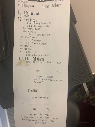 Read moreI normally do not have an issue with this restaurant. I have ordered from them plenty of times with fixable issues, but this time is different. I normally order the pick two (soup and sandwich), but I decided to order a different sandwich. I ordered no feta cheese, but the sandwich was covered with it. My order was received around 10:42am and I started calling about 3mins after to see if I could catch the delivery driver, but no luck. I called the restaurant multiple times and pushed the button to speak with a manager. It rang and then went busy, thus hanging up on me. It continued to do that no matter what option I chose. It is now 11:18am and I still haven't been able to reach anyone at this location. I feel that this issue could have been an easy fix, but since no one is answering, I have to go up there on my break. Communication and accessibility (via phone) is definitely lacking.