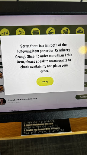 There's no point in me using a kiosk and then having to wait in a line that goes all the way to the door just to get a cup.