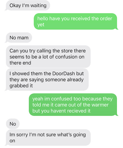 Twenty minutes later I went back up and asked about it again and they told me it still was in the oven. I told them that it was not possible to still be in the oven. They told me they could not make the oven go faster and I would have to wait. I told them it had been 40 minutes since I ordered it. They looked at my receipt and then told me they were out of small pizzas so it had just not been made at all. So they had been lying every time they said it was in the oven.