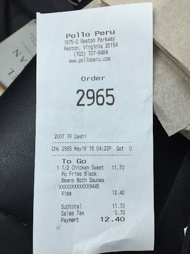 Ā Ā Ā Read morePollo Peru Reston, the original of the two locations, holds a special place in our hearts from our time living in Reston. The food here is absolutely phenomenal, and it has consistently delivered some of the best Peruvian-style rotisserie chicken and sides. The atmosphere is casual and welcoming, perfect for a laid-back meal with friends or family. The seating area is clean and spacious, and you can tell they take pride in maintaining a great customer experience.