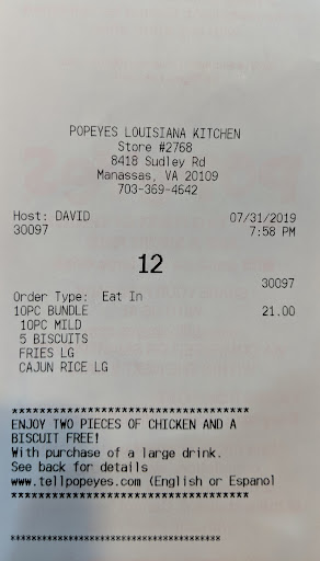 Read moreThis is the second time I frequented this popeyes and the service is increasingly HORRIBLE. I placed my order on the app and waited 15 minutes before going to pick up the order. The place was empty of customers and the employees were all doing something else besides manning the registers. After a few minutes, the young man working at the window came over to ask if he could help me. I told him I was picking up my order. He picked the receipt up off the counter and proceeded to call my order to someone in the back--what's the point of ordering ahead--anyway, I step back to wait on my order. He gets a call at the window so he abandons preparing meal. Another couple of minutes another young woman picks up the receipt and continues preparing my meal. Still waiting for some items in the back. The shift manager then walks by and they exchange words. Not once did she ask if I was being helped, or if she could do anything. Finally all my items are ready--it wasn't a big order--the young woman, bags the items, twirls the bag and place it on the counter, without saying anything, she turns and walks away.