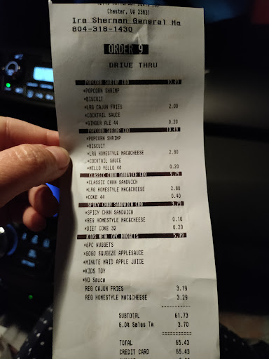 Read moreThis is the second location where I have stood waiting forever while other people were waited on that came in after me. This last time I placed a mobile order, went to pick it up after 15 minutes. I stood there like I was invisible. 7 or 8 workers and a manager up front wandering around, picking and choosing who to wait on, get refills for , chat with and whatever. After 10 minutes a young man who seemed very put out to talk to me asked what my order number was. He went to multiple registers looking for it. Hadn’t even been pulled up. He meandered around then finally I see him standing at the side making my three sandwiches at about the slowest pace he could manage without completely stoping. Walked around with them , slowly put them in a bag then walked back to where he was making them and finally put one order of fries in the bag..Then he wandered up front to again , slowly closed thr bag with two stickers , walked over and handed it to me while striking up a conversation with someone. I watched another man stand there with no one else in line being totally ignored by the manager and all employees. I was in this business for 20 years and this place acts like they’re doing you a favor to even consider waiting on you. Chester has way too many more chicken places that may not be perfect but none of them are as screwed up as this place is. Never again and I will be sure to let as many people as I can to stay away from there. Not that anyone in the Popeyes organization ...