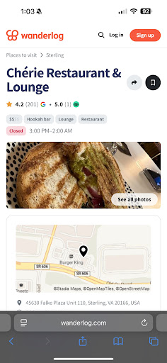 Read moreThe venue is posh inside. It's absolutely charming, romantic, and cozy. Service is superb!! Nice stars all the way. Drink options amazing!! Food? Not so much. For a place like this, food needs to match. More options need to be offered, and better ingredients as well as presentation needs to match the restaurant. We ordered two sandwiches, though tasted alright, weren't impressive. The plate came rather empty looking. There should have been chips, fruit, fries, or something else for both feeding people's hunger as well as presentation. The sandwich left me hungry and wanting more... and I'm 115 lbs who isn't much of an eater.