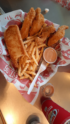 Seems to be a hot place for the kids. {Maybe because nothing but the same old burgers/pancakes is open past 8pm anymore (and now another Popeye's is coming, just down the street... surprise...)} Whoever did the site plans... you f'd up. Way too much drive through area and not enough parking. Seen ONE drive through customer the entire visit. Waste of space! {Maybe donate it to Chunk-of-Fillet's CF operation} There was no parking spaces open. Plenty of drive through area open though... Almost had to park on the far-side of Chipotle. That's too far to walk for a fast food basket. No sidewalks from Chipotle parking to Cane's... have to blaze through shrubs, and exposed drip irritation (another f'up). {or maybe it's the county zoning regs... neither one...