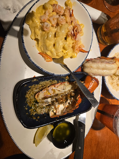 Read moreSo, it's been years since we've dined at a Red Lobster and I'm just now remembering why. Extremely overpriced and underwhelming I would say for our meal. They still have the 50+gallon tank with half dead lobsters to view on the way in which probably have the same ones that were in there the last time I was there . Smells like the place needs the carpeting and inside redone. We went at lunchtime at its peak hours between 12-2pm. We requested a table from the hostess, which she replied that she would have to see if the waiter in that area could handle another table. I could understand this if the place was busy but it wasn't . She then came back after a few minutes and then told us that she would have to see if the table was clean. Again ok, but why didn't she do that on the first few minutes she was gone? We were then approached by a man for the back asking if we had been waited on and told the gentleman yes we were just waiting on the hostess to seat us. Mind you it's only two of us, it's not like we had a party of 10+ people . So after waiting a few minutes we were finally taken to our half table half booth. Reviewing the menu we found the lunch area which advertises starting at9.99 which has only one selection of being 9.99 and most other things are 15$+, which are better than the dinner prices definitely, but I was still a little sticker shocked. After ordering one of the tables left from our area, where when noticing the waiter seemed shocked and was looking out the window trying to see what vehicle the people got in. Seeing this we asked if they walked out on paying , he said no, but they didn't leave him a tip on a 134$ bill. I get it , I would be aggravated too, but visibly show in front of other patrons as he did. We then received our food and the person I was with said to the waiter that their meal came with a drink , if she could get a tea , instead of the water she was drinking. He politely said yes. We finished our meal and here is where the real hiccups start. The tablets they have to pay are horrible. Instead of getting a bill and paying they are relying on these things now that barely work, they are in need of a touch pad recalibration and do not show you your bill before paying. They ask for a tip on your total which we gladly did, not trying to stiff the poor guy that was just done on that 134$ lunchtime bill of two people . After reviewing the receipt we ended up paying for the drink what was supposed to be included in the cost of the Thursday special. We waited a few minutes and without seeing our waiter again, decided to just leave and say that the added 3+$ would be a lesson learned and added tip to the waiter. Overall the food was warm, not WOWing, very bland, and not worth it. See you in another 10+ years...