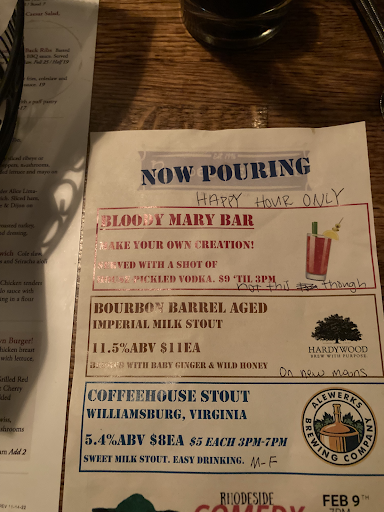 The waitress was pleasant about it and said that she couldn't personally change it but she'd grab a manager for us. I had zero issues with that. The manager, however, was a different story. He condescendingly insisted that he couldn't give us "happy hour" deals on the weekend and that we should walk outside and look at the front door to confirm the day's deals. First, that's an asinine statement. Your establishment gave us a specials menu so that we wouldn't have to do that. Second, please show me where it says "happy hour", "Monday-Friday", or "weekdays only" anywhere on the attached menu. Last, the first special on that menu is only on weekends for their brunch. So there are three specials on the menu, no mention of happy hour or a day of the week, and the customer is somehow supposed to magically know that the Bloody Mary special is valid on Sunday but not the beer special? Incredible.