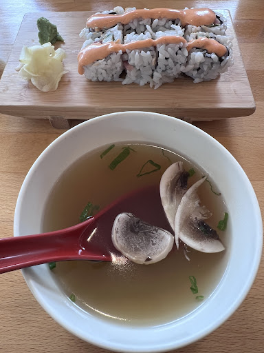 First, the "gyu don". Listed on the menu as a "bowl" it was served to us on a plate. So what you might ask. "Don" is short for "donburi", which is served in many restaurants in Japan. The principle of donburi is that you have a bowl of glutinous, traditional Japanese rice, upon which you place an assortment of food. The cutest is "oyako" donburi; "oya" means "parent" and "ko" means child. Oyako donburi, then, is chicken with an egg sunny side up. Get it? Chicken and egg. Back to "gyu", which means beef. Ours was very fatty and unremarkable; the onions were cold -- yes cold -- which is not the way it's supposed to be served. With all donburi, the idea is that the food on top soaks down into the upper layer of the rice, flavoring it for your enjoyment. The side effect is that the rice becomes "unglutinous" and harder to eat with chopsticks. On a plate, the rice soon begins hard to enjoy, whereas in a bowl it can be scooped into your mouth. That's how "authentic" Japanese eat rice out of a bowl. Secondly, the sushi. Poorly rolled, and the slices of fish were dried out. How do I know all this? I lived in Japan, traveling by car, motorcycle, foot, boat, and air to all the islands for 5 years. So....there are any number of places where you can get much better food. Skip this...