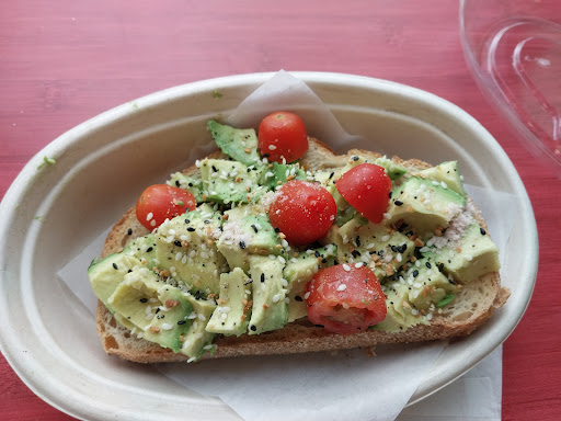 Read moreThis was my first time visiting and I was hoping to get something quickly in between shopping trips. I'm glad I didn't have a deadline because I ended up waiting 20-25 minutes to get my toast. There were only 2 employees and apparently right before I walked in, there was a massive order placed and they were scrambling to get it all done. The employees were nice and it wasn't their fault, but I didn't know that until after they let me order, so it would have been nice if they let me know ahead of time. I probably would have chosen to go elsewhere. Instead I sat and waited. The everything avocado toast was very good, but if you go in, based on my experience and the other reviews,...