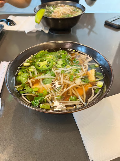 Read moreA lovely Asian food hall with delicious food, incredibly friendly staff, and cute decor! After being told a million times that I HAD to try out Happy Eatery, I finally made my way here for a weekday dinner with a friend, and it absolutely lived up to the hype! When I first entered the shop, I was immediately greeted by an incredibly kind and helpful staff member at the boba counter downstairs and a really vibrant, upbeat atmosphere from the music and decor. We were dining in, so we were directed upstairs, where they had a few tables for two, a line of high-tops along the windows (which provided a ton of natural lighting and were a great way to look over Rosslyn), and a cute seating area for large parties in the very back. My friend and I settled down at one of the tables for two, and we each ordered a pho.