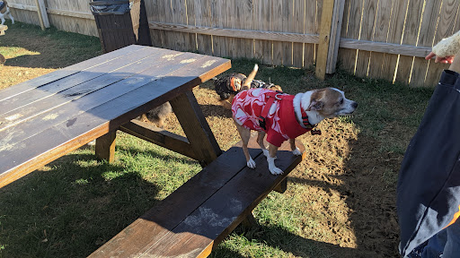 There was even impressive staff. Two mean looking security front door staff grunted when we arrived and one fanned us through with a hand wave while looking away from us. No one was nearby to welcome or say how the place worked. Could find no one with a staff identification to answer questions. Two said I don't know. Go ask at the bar. Signs are not tall enough to read over people's heads. Beer tasting for 20 types or so was handwritten in a scrawl that wasn't very readable. Don't know where dog bowls were. I never saw a one. But I asked twice for a glass of water for my dog and was told twice there are bowls around.