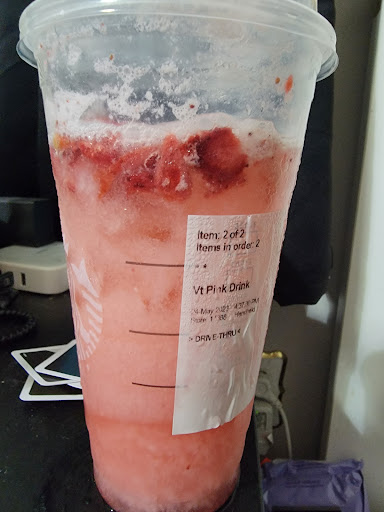 Usually I go to the Woodbridge Starbucks off Prince William parkway, because this one is always iffy. Today I was on my way home and decided to stop and get my husband and I starbucks. At 1st, they handed me the strawberry acai lemonade with no Strawberries, when we asked for extra Strawberries. The pink drink, they just threw the Strawberries on top and called it a day. I have NEVER gone back through a drive through. I HATE complaining. But you put no Strawberries in the STRAWBERRY acai? Especially when we asked for extra. Then when we went around the lady at the window laughed at me saying "but there's literally strawberries" yeah....at the top of my drink... how are the dehydrated Strawberries going to become soft if they aren't in the actual drink? And when she handed me my husband's strawberry acai, there were very little Strawberries, and they weren't mixed in the drink. He normally is done with it within like 10 minutes, it's still sitting next to him 15 minutes later. Finally, I'm pretty sure my drink isn't supposed to look like this just 15 minutes later.