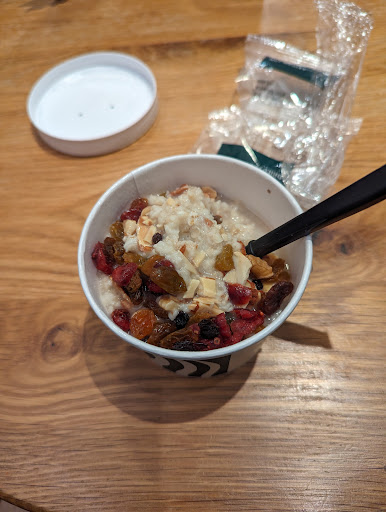 And on a very busy day, I got to witness an exemplary moment of customer service. As stated, very busy - non stop orders and the staff was working diligently to get those orders done. A young man came in and was unfamiliar with the pick up system. (His father had made the order and this customer didn't know you could just grab the cup with your name and go.) One of the hard working staff (wish I had caught his name tag) slowed enough to clarify the process and confirm that the customer could take the cup. It easily was a moment where staff could have been too busy and ignored the customer's uneasiness. But in the flow of work, this staff member caught the need and handled it with a friendly smile. 5 stars in my book. (Writing this review a month later because as I came in to get my coffee today the flashback came up and clearly that interaction stuck with me.) Moments like this matter....