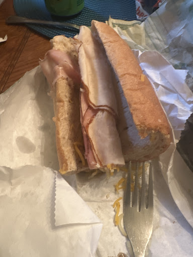 I've never come on here to complain before, but I don't like businesses trying to take advantage of people. I went to the Goochland Subway today with my kids. I wanted a wrap and a 6-inch sub for my child. I said, "6-inch on Italian, please, and a wrap." She grabbed the bread, cut it, then was in the process of putting the other half back and told me they don't have wraps, only flatbread. I said, "Okay, I'll take the other half of that, then," and she brought it back to make my sub. I ordered turkey, American cheese, and mayo on both, with some veggies on my half.