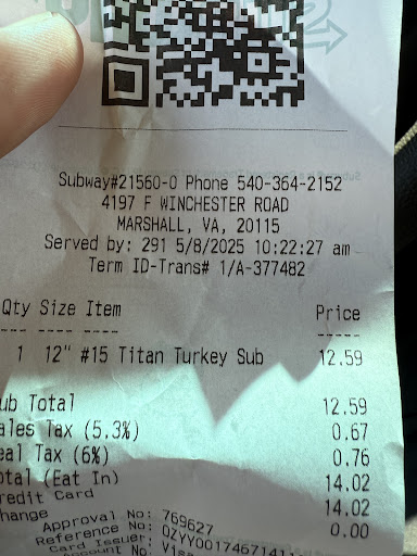 Read moreSubway is sometimes hit or miss. The Marshall store was very clean. The person behind the counter was very nice, and no way does this reflect on the person behind the counter she did not speak english or vary little english. The service was good the food was good. I asked a question about double meat, and she did not understand what I was asking. I did not get the double meat because of that reason. I do not go to Subway often, but when I do, this would be the store. The cleanliness of the store was impressive. I liked the lady who made the sandwich, she was friendly but the language barrier was not bad she understood what we...