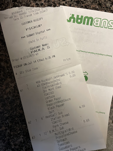 Where to begin? The Italian herb and cheese bread on both of my sandwiches was so hard and dry. I was highly disappointed in this, as it’s my favorite type of subway bread. And far worse, the horrible customer service by the young male and older female this evening, around 6:20p on 7.14.22, made sure I will never be returning to this location, though it is less than half a mile from my home. The lady was rude to the customers in line in front of me when I first walked in. The had a sign up that expired 6/30 and they refused to honor it and only pulled it down from display when I mentioned it would be a good idea. I ordered a sandwich and waited for them to make the online order I had already placed. When I saw them sit the bag on the pickup shelf, I went over and inspected it for my name. The same rude employee asked me if I had orders online, I said yes. Then she asked if that was my bag. I said yes. Then she asked if I had paid for it. Obviously if you made it and say it on the shelf I had paid for it online! I said yes and asked if she wanted proof. She said yes, she did, actually. I showed her my confirmation email and she looked annoyed as she read my name on the screen and said, Oh, Paula S. I can’t provide the inflection in her voice or the looks of the other customers (who were still there, sitting and eating) but it wasn’t good. None of it was good. They couldn’t believe it either. I haven’t had subway since we’ll before the pandemic and Maybe that was a sign that It should...