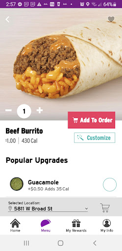 I go inside to order and try and order from the kiosk. That was futile. So I went to the counter and sat there. Finally, I was saying hi, hello, can I get some help. They just looked at me like I am crazy. Then turned around and just ignored me. Ok. So I go to the drive-through and order 2 beans with no onions, extra cheese, and extra extra red sauce. I get up to the widow, and they tell me they don't know how to make a bean burrito with extra extra red sauce. Then charged me an extra 1.60 for the .002 cents worth of red sauce. I get home, and the burritos don't have any red sauce. And the cup they gave me was 1/2 of what they put on the burrito normally. So needless to say, I had very dry and unsatisfactory burritos I paid 6 dollars for. And then was charged for extra sauce. But I didn't even get the regular amount that's supposed to be on them. This was Broad Street at Tuckernuck Square. Prior to that, I had gone to the Staples Mill store and paid 40 frigging dollars for Taco Bell. They didn't add any extra sauce or sour cream or cheese.They gave me chips with no cheese sauce as well. I got upset and asked please can I get what I ordered for 40 frigging dollars?"" Mind you, I got a quesodilla and some burritos and tacos. For 40 frigging dollars. And then the manager got all mad at me and told me to leave and then proceeded to chase me out the door and then take pictures of me and my car. And she proudly said I got you on camera. Like, ok. These two stores used to have good quality food and service. I guess they want to overcharge and give you inferior service. This sucks because Taco Bell used to be one of my go-to's. Wow. Just wow. I hope this review helps some people find a place that charges adequate prices for what you get. I am totally bummed out. These companies are getting greedy for money. Charge 3 times for...