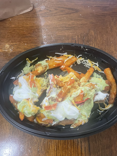 Read moreCheck all your ordered food. Even if you have a big order check all your order one by one. The People cant get an order right to save their lives. I have gone there multiple times and if I order anything over 3 tacos I can almost guarantee the order will be wrong. They roll their eyes at you when you go one by one to check if they have the right things in your bag but dont move from the drive thru window till you check each and every taco. If they dont want us to do that then maybe they will start getting orders right the first time. The pic is of my taco fries. They have not been touched yet. This is how I got them. CHECK YOUR FOOD. Also be prepared to wait. The drive thru will only do one order at a time. Meaning that they will take an order and not take another one till the first one got their food. Also while this is going on you can see a group of them chilling at the door talking and smoking, including the guy with...