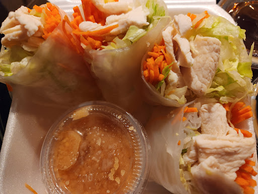 As for the food, the taste was average and a bit bland - standard stuff. Not really the flavourful tastes that we're used to from other Thai restaurants. Also, the standard round containers that our food was in were not completely full like we are used to from other Thai restaurants. I tried to show that in the pictures; we hadn't eaten any of the food yet; bowls were on filled to what you see in the pictures. The fresh spring rolls were definitely fresh but you must rely on sauce for flavor because there's no seasoning in any of the ingredients, not even tge chicken that's used (would be great if they could marinate the meat in something first).
