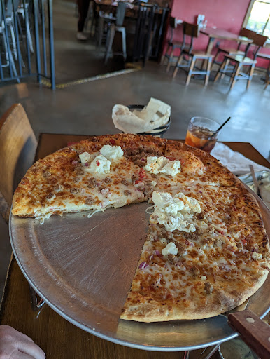 Ate here again Saturday May 21. We ordered fried pickles as the app, I got the bbq platter and my husband got truffle fries.unfortunately I've removed a star since the last visit. The pickles weren't done right, the skin was so tough that the pickles just slid right out. A suggestion would be to do pickle chips... My husband ordered truffle fries because they weren't serving pizza...again. it is really the only thing he likes there. My bbq was good but tasted microwaved. Im not sure how it was heated but the method used wasn't working well. The truffle fries were a bit soggy or undercooked, not sure which. They were out of makers mark and tried to give me a shot of something else less equivalent in price. I was also disappointed that steak wasn't an option for salad topping. They have a ny strip on the menu. There were a lot of flies in the bar area and one worker was in the kitchen cussing up a storm. He kept coming out to watch basketball and staring myself and my husband down, so much to where it almost caused a scene! We could hear him over the live music. Please make some changes. This place could be great and should not have been that empty on a Saturday night.