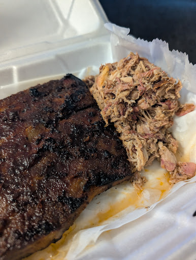Read moreThe food here is pretty good. Nice portions and nice flavor. The meat can be a little dry but it's nothing the sauce can't fix. The sweet potato fries are awesome along with the peach ketchup. The pigtail curly fries and onion straws were really tasty as well. They have this cute little pig game on table to pass the time and there is a Television on one wall too. The service here is attentive and kind and the restaurant is very clean and well maintained.