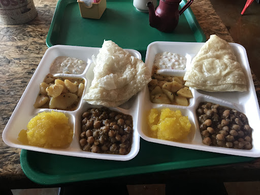 Halwa Puri - OK but hey, come on who serves folded dead puri and with raita. Puri must be bubbly and crispy. Increase chickpeas serving, start adding kalonji in bajhi and replace raita with desi pickles or pickled onions.