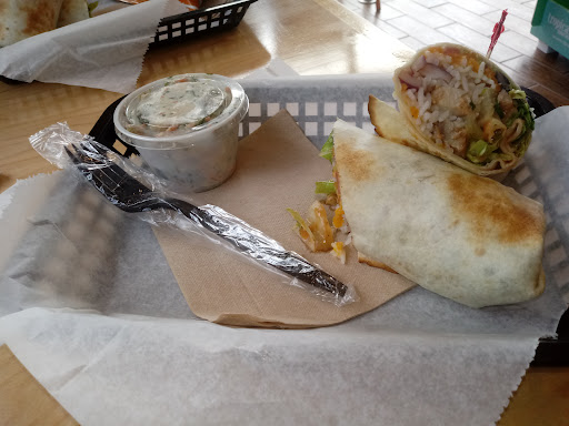 I ordered a buffalo chicken wrap and a blueberry bliss smoothie. The total was just under $17. The wrap has so much sauce there was a pool of sauce in the paper that leaked out and got all over the outside of the wrap. There were 3 small squares of chicken in the first half when I took a bite. After the first bite, there was no more chicken just lettuce and 2 1/2 layer of tortilla wrap. There was only 7 small cubes of chicken in the middle enough for the first bite and then no more chicken on the ends. There were so little ingredients you could see when she cut it that the wrap went around the ingredients twice and halfway around on the third wrap.