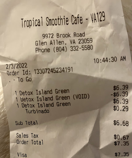 Read moreI’m always happy with my experience at this tropical smoothie! My food is always piping hot and the smoothies are delicious. I love this one especially for one reason, and that reason is because they still know how to make a chicken cordon bleu wrap!!! I wish it would just stay on the menu at ALL tropical smoothies, but I’m so happy that they will accommodate making me one still. It’s my absolute favorite wrap, and there’s no other wrap I get because it’s that good. The first time was super easy, I asked for it and I received it immediately. The second time I went in it was a different girl there, maybe she was newer but she was very nice. I asked her about the wrap to make sure I could still have it made and she said oh I’m not sure. I told her the last time I came in (which was less than a few months earlier) they made it for me and I believe it was even one of the owners if not the owner said they could make it for me. So the girl went and asked the same lady I had talked to during my first visit and she told the girl they could make it and what they had to use in order to. So they said they’d price it as a buffalo chicken wrap, and just use the ingredients they would need to use to make a chicken cordon bleu wrap and they did!! They are amazing and they accommodate! I’m about to go in tonight, and I hope third times the charm and they can...