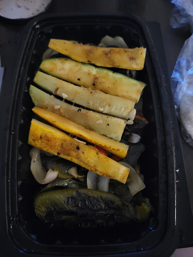 Also, the food quality was still subpar. My veggie enchiladas were extremely undercooked. The zucchini was hard and the onions had absolutely no char marks. The picture on the menu shows perfect grill marks on the veggies. These seemed to barely touch the grill. My husband was also disappointed at the small portion size (compared to the price) of his carnitas and the fact that they were swimming in a sickly sweet sauce.