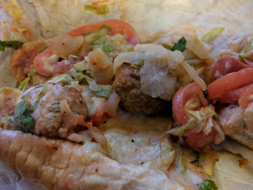 This time, the sheer stupidity of the staff there is beyond explanation. Once again, the main ingredient for a cheese steak wasn't available, so, instead of having to wait online for a refund, I opted for a meatball parm. The rocket scientists thought all the options for my cheese steak: tomatoes, lettuce, sauteed onions, mayo, salt, oil, vinegar, were what I would want on my meatball parm. They literally just swapped the beef steak for meatballs and called it a day.