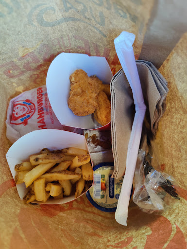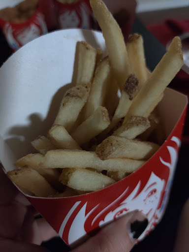 anyway, upon reaching the counter, the cashier took two or three in-store orders before asking if I was picking up, which wasn't a huge deal, other than that the person announcing orders announced one and DIDN'T ask me if I was picking up, which was weird because it wasn't what one would expect, when you walk into a Wendy's and go straight to "pick up order here" screen and stand under it, but I digress. order was pretty prompt after that, and the correctly did give me unsalted fries. however, they were definitely not crispy, and indeed a bit soggy. not a huge deal for me because I was just starving, but, notably under-par (I did not attempt to ask to have them remade). the chili cheese fries were a generous portion however, and nice and hot. the nuggets were not spicy like I'd ordered, and they did not mention this when giving me the order, nor offer any compensation (sauces, etc.). the straw, which I didn't use, was folded in half?? see my photo. other than that, I had napkins, and a silverware packet for the topped fries, and when I went back to the counter (there was no longer a line) and asked for "some ghost pepper sauce" the cashier woman gave me four, which I've never had happen at a Wendy's before, so that was nice. they'd already gotten me the drink I put on the order, but when I went back to get a refill, the freestyle machine was out of all of the "zero sugar" options, but they had a machine for drive through orders, that seemed to be more...