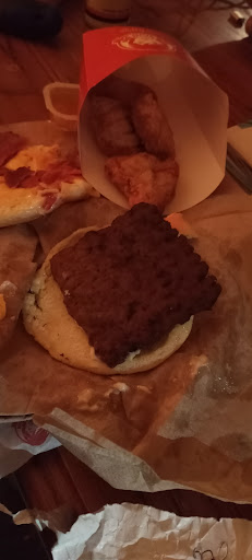 Food has went down hill at this location, restaurant is extremely dirty on 7/28/2019 would give zero stars if I could. Last time I order here. Have complained in the past but no use , staff has went down hill as well an it shows by service an condition of restaurant. Had to throw fries in trash cause I didn’t have time to stand in line to get it corrected. Just bits and pieces of burnt fries and hamburger was slapped together . All around a bad meal here today.
