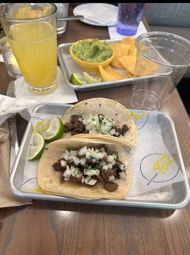 Read moreMeh. Walked in from Washington Boulevard doors. My first impression was why are people eating in the hallway? The pillars painted in a bright meconium green were not what I wanted to be looking at while I was eating. The lighting was artistic and clever, though. We sat at a two top that wasn't really cramped, but it felt like it. The order process is through a QR code. Because of that we didn't really feel greeted by anyone who worked there. We ordered a drink two waters, guacamole with chips and a variety of tacos. The margarita came first. It was delicious, but we're not sure if there was any alcohol in it because we didn't feel any effects. Guacamole was pretty good but cost twice as much as one taco and there was a large chunk of really firm avocado in it. So at least we know it was fresh. The tacos arrived all at once, and we had to ask for the waters that we ordered through the app at that point. Shrimp tacos and the Carne Asada were delicious. The corn tortillas were fresh and firm enough to hold their contents. Fish taco wasn't very good and the shredded chicken was dry with a lot of spice, but not much flavor. We were excited to have a new taco place in the neighborhood but they're going to have to up their game if they want to compete with District Taco and Bar Taco.