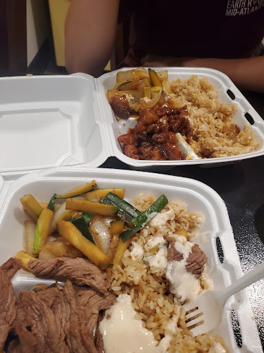 I would not pry to deeply about this place by the atmosphere since to-go is their main service. If you plan to dine in, they will give minimal service, with food still in to-go box and fountain drink is self-served. They just let us use their furniture to eat. The furniture is like a typical Chinese/Hibachi to-go restaurants with the metal...