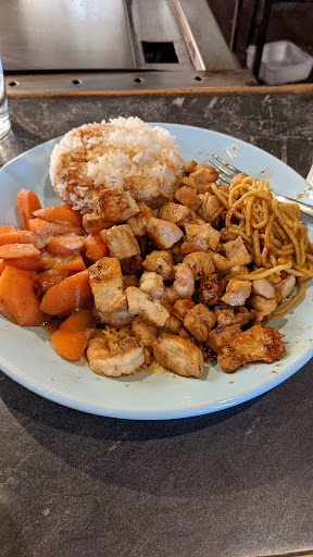 My husband and I went in for lunch today. We sat at the grill and ordered steak and chicken and steak and shrimp. The waitress was very friendly and greeted up immediately when we arrived. She definitely showed pride in her work. The decor was very nice as far as eateries go but I payed more attention to the food and less attention to the decaying carpet. We ordered sushi first and got Yum Yum Rolls which I recommend. I am pregnant so I could only eat fully cooked sushi. Again, the waitress was very helpful in showing which rolls were cooked and which weren't. For my husband and myself, we wound up spending 35.97$ plus a five dollar tip. That is quite a bit for lunch but both of us had left overs and sushi always adds to the price. The Yum Yum rolls we ordered were 7.95$ for 8 pieces. They had cheaper options at around 4$ as well. The cook was friendly and enjoyable to watch. The food tasted excellent. Our meal came with a salad with ginger dressing, rice, vegetables, and the two meats. Plus an after meal orange sliced up. The average cost for all of this was around 10$. Not too bad for the amount you get. I don't think I disliked a single thing about this place. Everything we had was delicious and everyone we talked to was helpful and friendly. As long as you can spare the extra few dollars for lunch or dinner, I think it's worth a go. (Even though you're likely to spend about the same at...