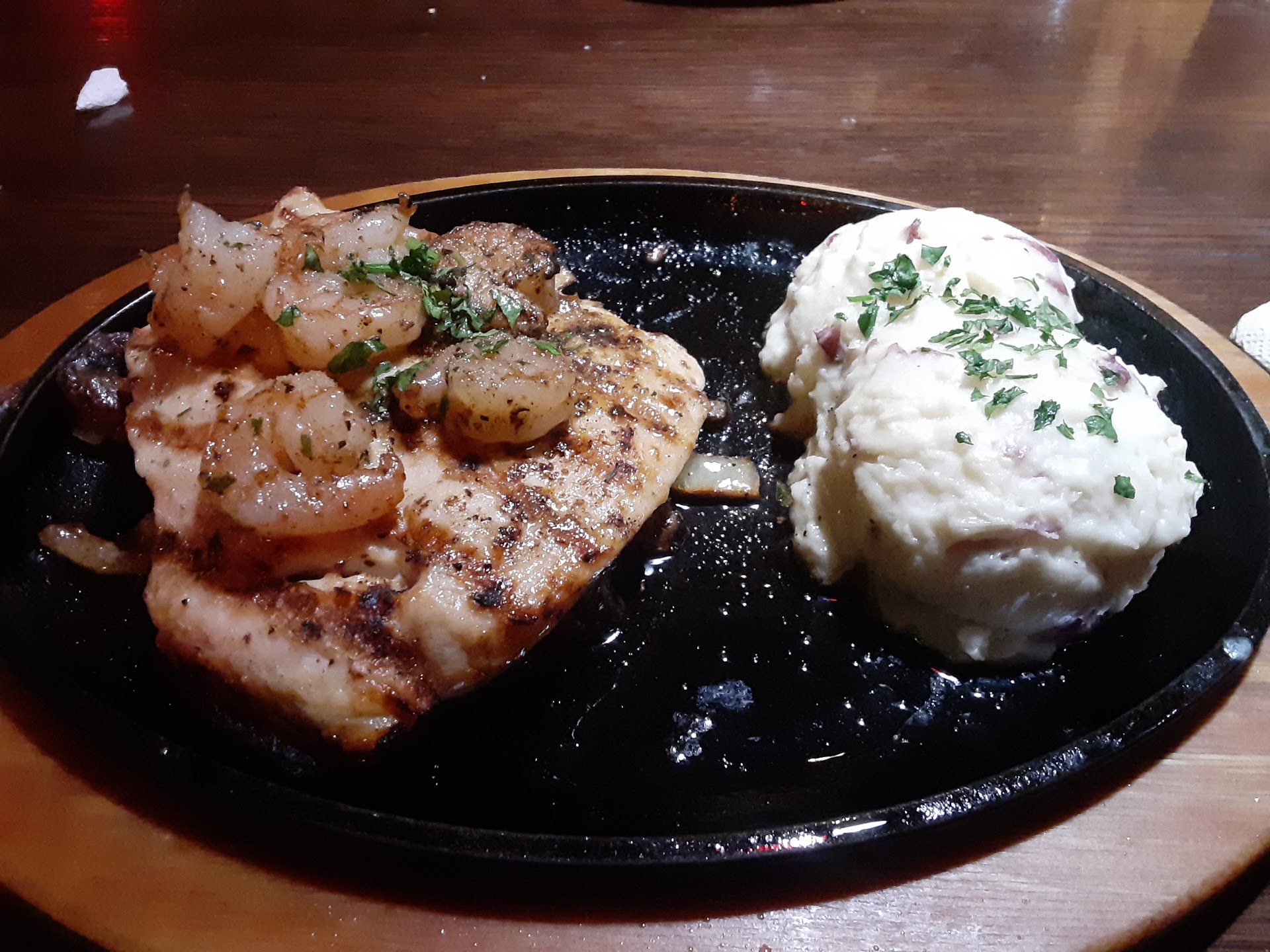 Read moreI last been here when they opened at this location. It was 2 stars back then . I was checking reviews of here recently and so I knew I needed to investigate. When I arrived the lady checking in people was very nice and did her job well. She told us 35 to 45 minute wait time and it just made it under 45 minutes when she called me. It took a while to figure out what I wanted to try the Ceasar salad was a 9 out of 10. Was no wow factorbut was made perfectly. The dressingwas plentifuland was mixed verywell. Next I chosen chicken and shrimp that was sautéed with mushrooms and onions. It had a Cajun seasoning to it and it was cooked to perfection all around. I was quite surprised. It was accompanied by red mashed potatoes. I thought of those as better than average. I also ordered a bourbon burger. It was very good all around. Nice bun and fresh toppings. The fries to me were average. They didn't have the crispy outside with soft inside that I consider to be the standard. I always like to spot things places could improve on and I have two on this review. First: the benches in the waiting room was nice but they are in need of backing. With a long wait, the window seal sure puts a beating on my back. Second: the bathroom... they do regular cleaning and have chart to prove it but it is a basic one. The walls and sink area looks like haven't been clean in years. That's all for this trip. Hope this...