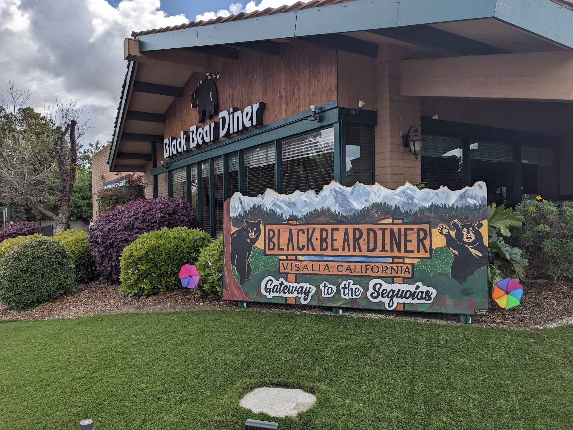Read moreWe popped in about 15 min before closing, but were greeted with a smile. When I asked if I was too late for ordering a meal I was told I would be fine, as long as I chose quickly. My husband and a friend were still parking the car when I was seated. My husband and friend ordered breakfast; I ordered the chili bowl & *corn muffin. I asked for xtra cheese and a little hot water, as the chili was very thick. Both were brought promptly. *I also ordered an extra corn muffin, as they are quite small..but very tasty. I also asked for honey. ( I was quite surprised by her bringing a squeeze bear đ» rather than those tiny pkts : ) I was also quite happy that upon our ordering seltzer water with lemon there was no xtra charge : ) My husband ordered the Calif Omelette and my friend the CFS Breakfast. (chicken fried steak & eggs) Both looked great on the plate, and both my husband & friend said they enjoyed the meal. No negatives on the food at all. The waitress let us know it was 30 min past closing, but was very tactful. (We had already paid the check) We thanked her for a lovely meal & service and left promptly. I also asked for a take out cup with lid for my sparkling water, which was promptly given. We will definitely return. This was my 2nd meal in two weeks at this Black Bear. Before these two meals I hadn't been to any Blackbear in about 10 years? I will now, happily, be a...