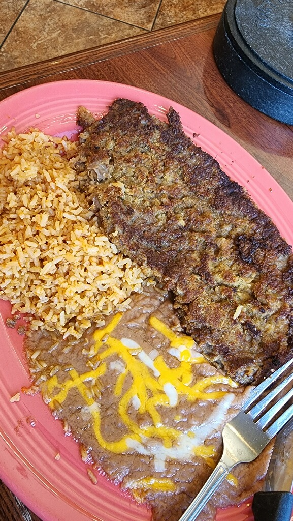 Read moreMilanesa steak, steak ranchero and a tamal⌠but letâs start with the salsa and chips. The chips were semi decent the salsa tasted like it went past itâs expiry date. The steak ranchero was probably the best thing out of this order, highly recommend. The meat in that dish is soft and delicious, the sauce only enhances its taste. Individually tasting just as good as the dish thatâs set up. For the milanesa steak the meat was gray underneath the bread crumbs definitely not something Iâd order again; the beans were too salty and tasted like they were served a day too late. The rice wasnât dry and not too wet, not too much tomato and not too seasoned seems like it was thought out a bit more than their other sides. The tamal, not particularly fond of wet tamales but the sauce in this guy was a bit flavorless to me no spice. However, the meat and sauce I side the tamal was flavorful, if only the masa was prepared better it wouldâve been as easy as wipe the sauce off it and slide it right in your mouth. The albondiga soup wasn't bland and wasnât over salted and the meatballs I guess you could say didnât look undercooked. The service was a bit slow for a restaurant that only had three tables filled and about 5 waitresses. Took a bit to get basic stuff like a check and a drink refill. The waitress seemed nice but also seemed like she just didnât want to be there but thatâs about it, it does have a bar you can enjoy they play their music and have some good conversation so if thatâs something youâre interested in you could go to that half of the restaurant and order...